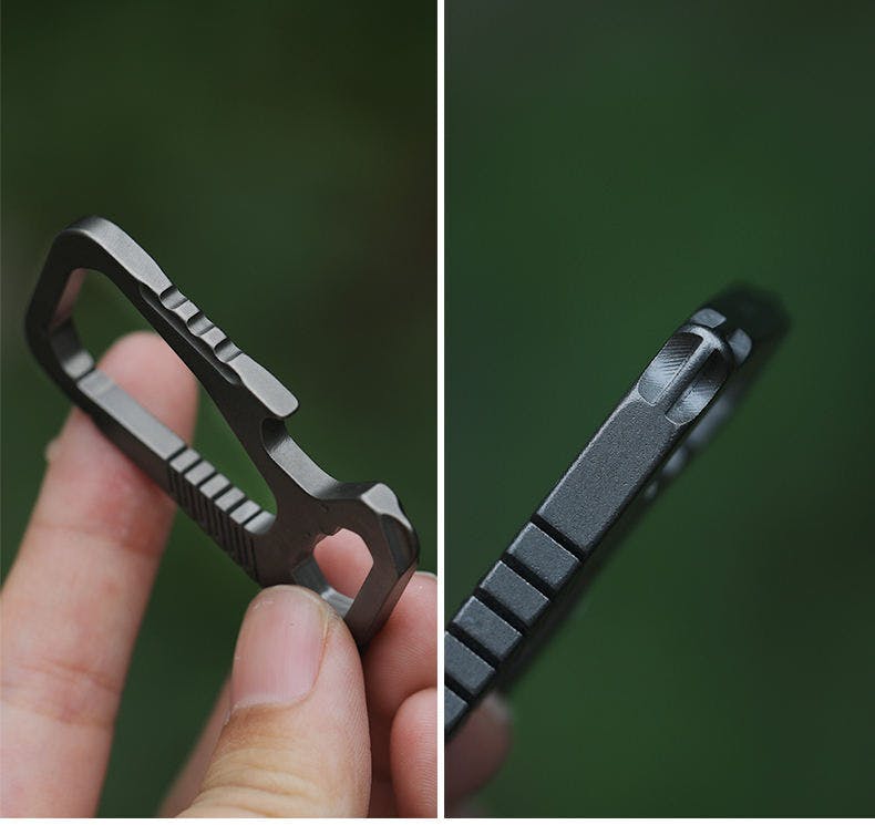 さらに高難易度加工のインテグラルカッティングを採用これによりチタン独自のしなりや耐久性を持ったカラビナに仕上がりました。